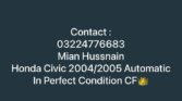 Honda Civic Automatic 2005 Perfect Condition 0/3/2/2/4/7/7/6/6/8/3